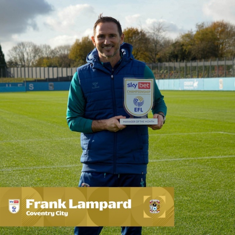 兰帕德10月教唆考文垂干涉6场英冠比赛,战绩5胜1负,他当选英冠10月最好教会。