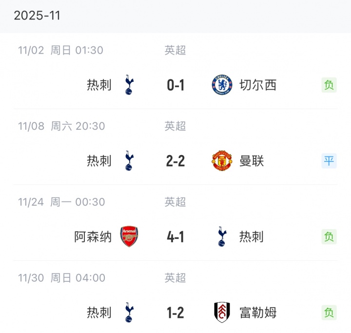 雅雀无声十一月快过完毕,热刺这个月英超一场没赢