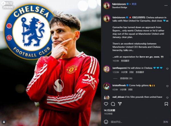 很快Here we go!罗马诺:加纳乔为去切尔西愿1月前不再为曼联上场