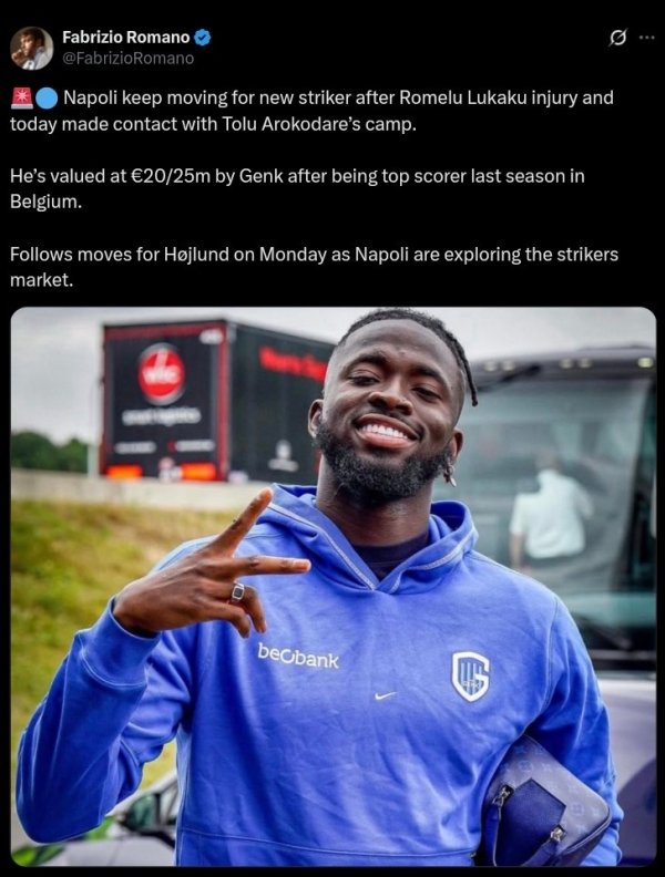 罗马诺:那不勒斯与阿洛科达尔获取关联,后者是上赛季比甲金靴奖