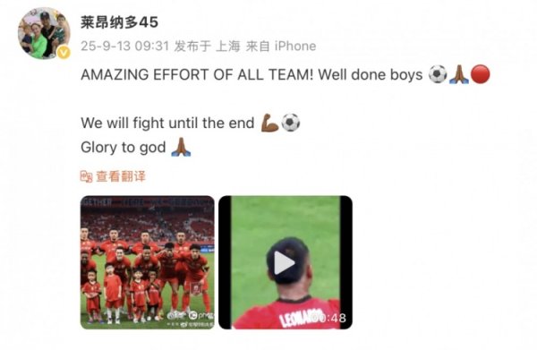 莱昂纳多社媒庆祝赢球:全队齐发挥得太棒了!咱们会奋战到终末!