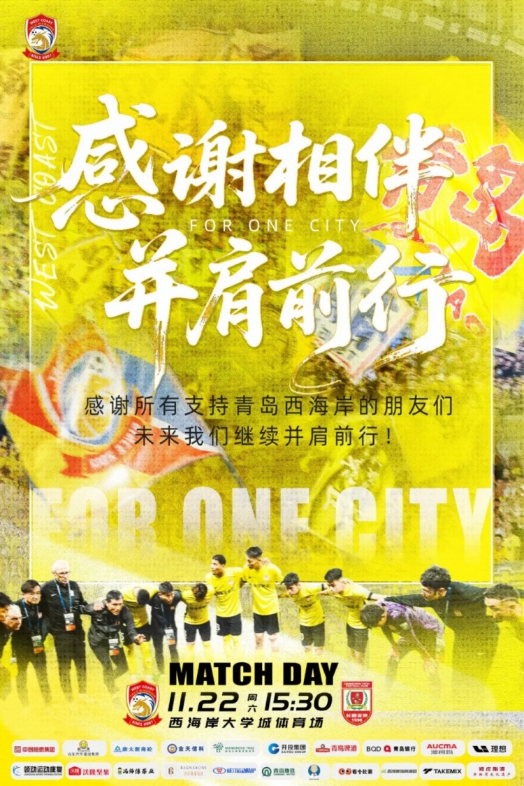 11月22日讯 北京期间11月22日15点30分,中超第30轮,青岛西海岸主场对阵长春亚泰。赛前两边公布本场首发。