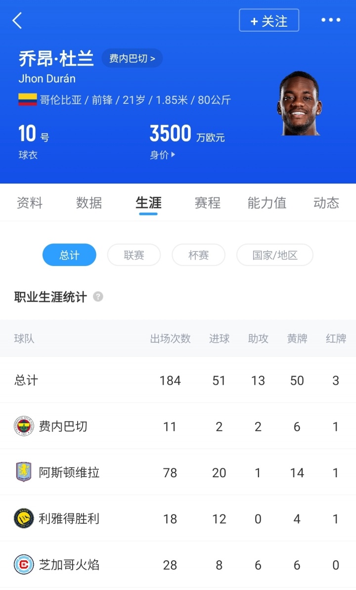 2025年1月,杜兰以7700万欧转会费从维拉加盟利雅得得胜,只是效用半年后便外租加盟费内巴切,本赛季出战11场比赛,孝敬2球2助。