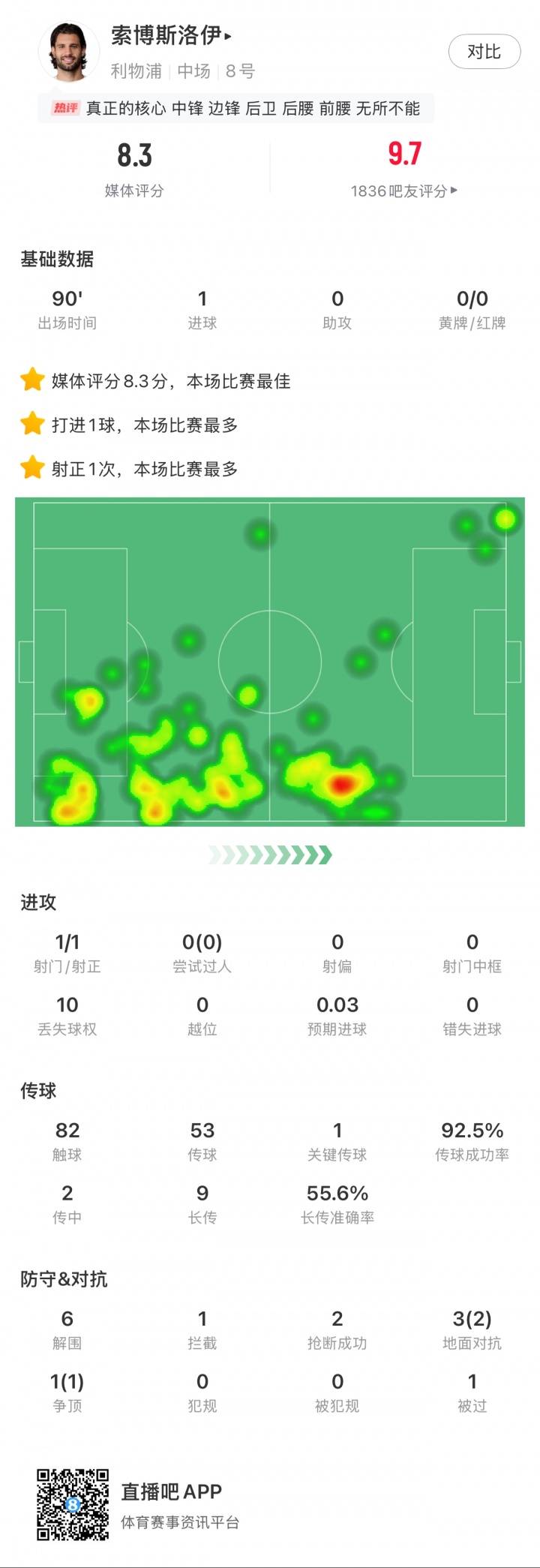 利物浦1-0阿森纳,索博斯洛伊1粒超极狂放球!