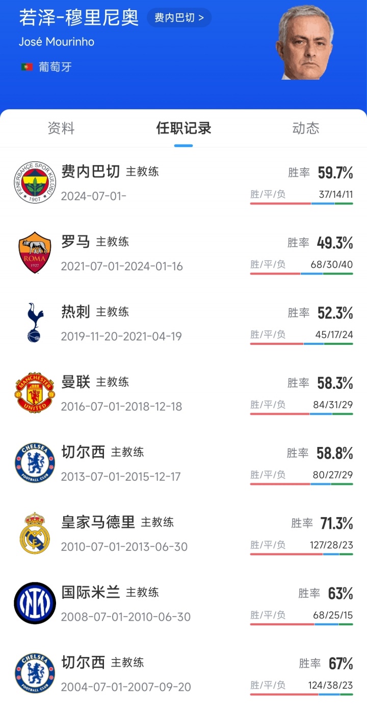 遭费内巴切罢职!穆帅聚拢2年欧冠附加赛出局,联赛亚军&欧联16强