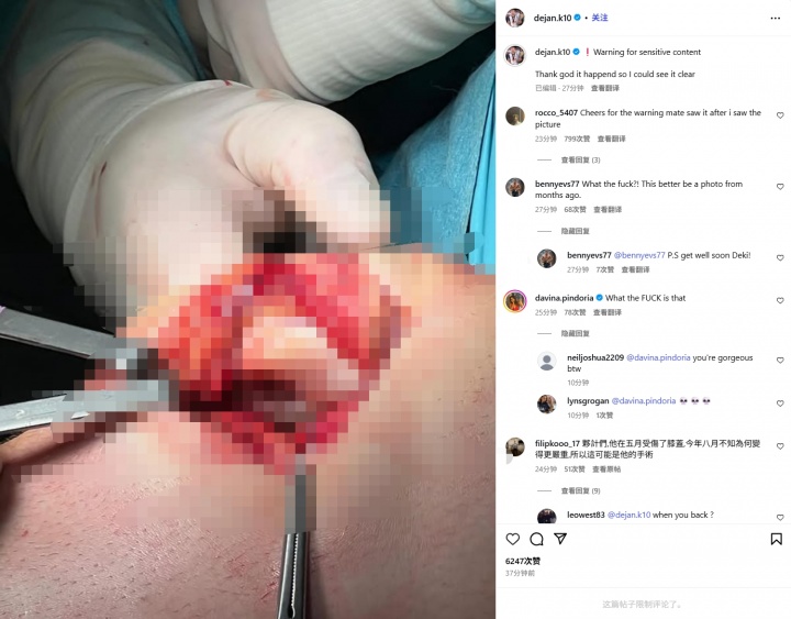 恐怖慎点😨库卢塞夫斯基晒重伤部位手术照:感谢上天让我看清