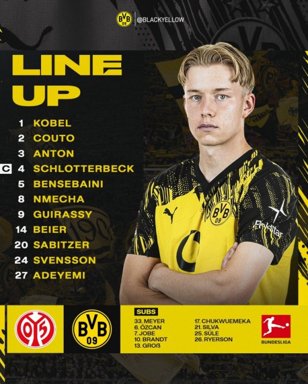 多特vs好意思因茨首发:萨比策、阿德耶米在列,吉拉西赛前热身伤退