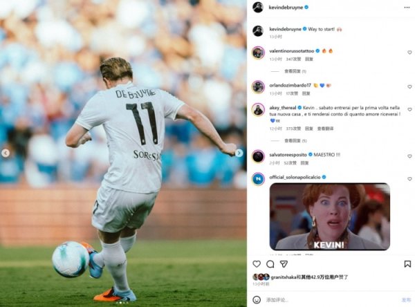 意甲首战破门,德布劳内社媒晒破门陡然:以可以的格式开启新赛季
