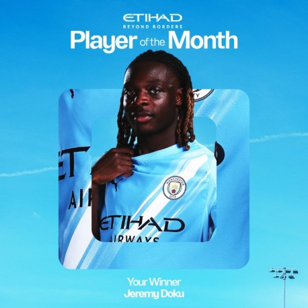 出场5次孝顺1球3助攻!官方:多库当选曼城9月份最好球员