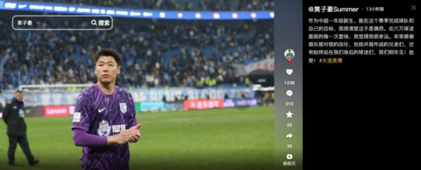11月24日讯 2025赛季中超联赛战罢,大连英博取得9胜9平12负的战绩,得回第11名。赛后,大连英博门将黄子豪更新了个东谈主酬酢媒体。 黄子豪在个东谈主酬酢媒体中写谈:当作中超一年龄腾达,能在这个赛季完成球队和我方的绸缪,我很清亮这不是有时。在六万球迷眼前的每一次登场,我以为我很交运。罕见感谢俱乐部对我的信任,包括并肩斗争的昆仲们,还有长期站在咱们死后的球迷们,咱们来岁见!血受! 本赛季,黄子豪代表大连英博出战18场,一齐为首发出场。......查看更多