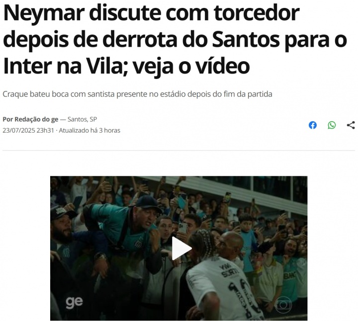 👀遇到两连败!内马尔输球赛后与桑托斯主场球迷强烈争论