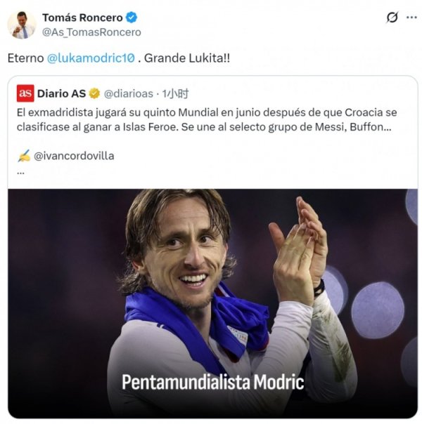 魔笛迎来第5届寰球杯!龙赛罗社媒:不灭的莫德里奇,伟大的卢卡
