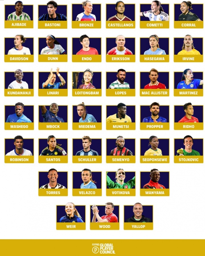 FIFPRO25–27年度人人球员理事会成员,麦卡利斯特、巴斯托尼入选
