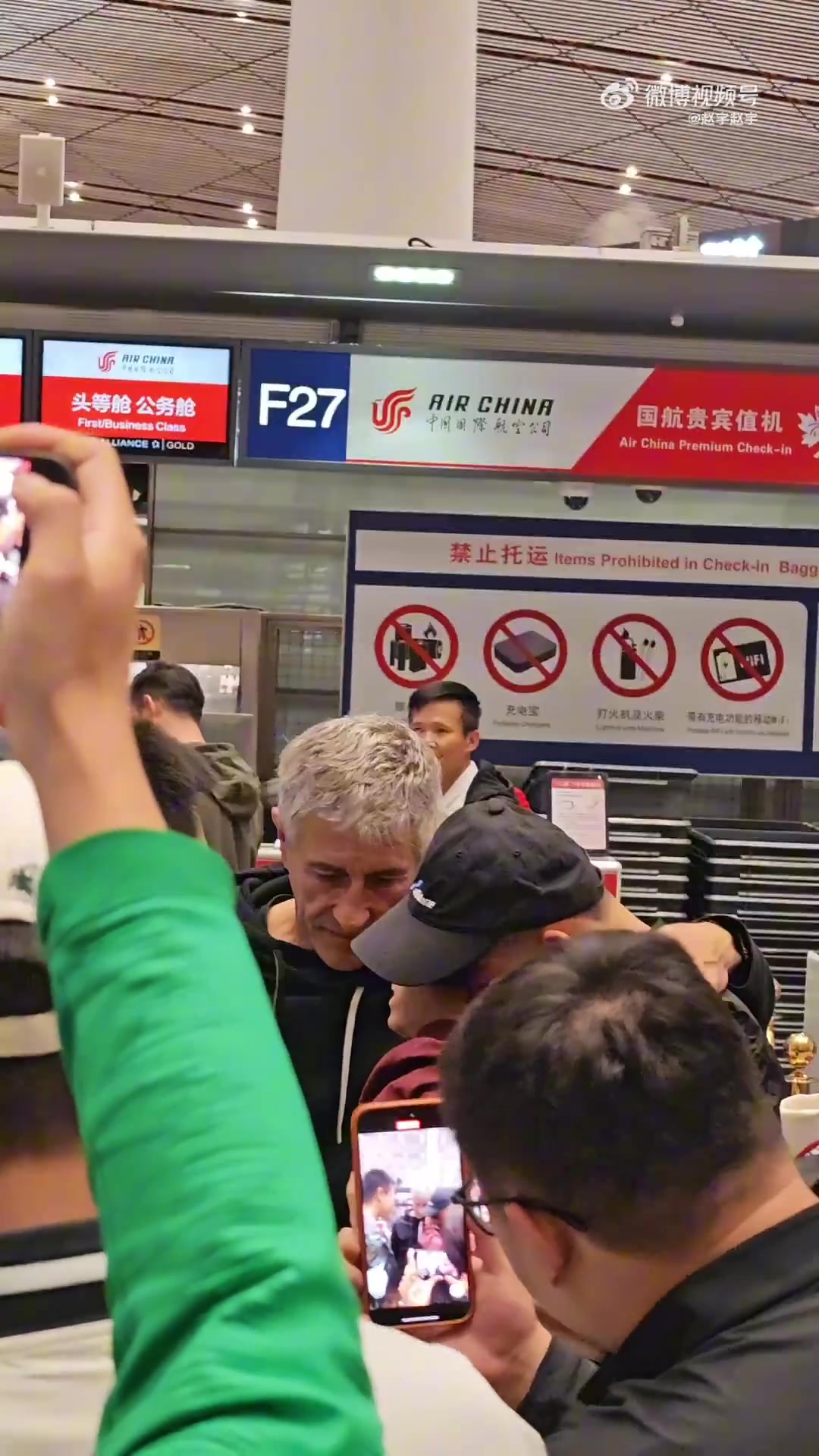 10月8日讯 据记者赵宇音讯,塞蒂恩今晨离开北京复返西班牙,部分国安球迷赶赴机场送行,国安球员张源含泪送别。