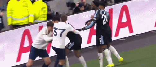 随后世东说念主一拥而入,两队的首发和替补球员,以致责任主说念主员,缱绻数十东说念主皆加入战局,场合止境火爆。