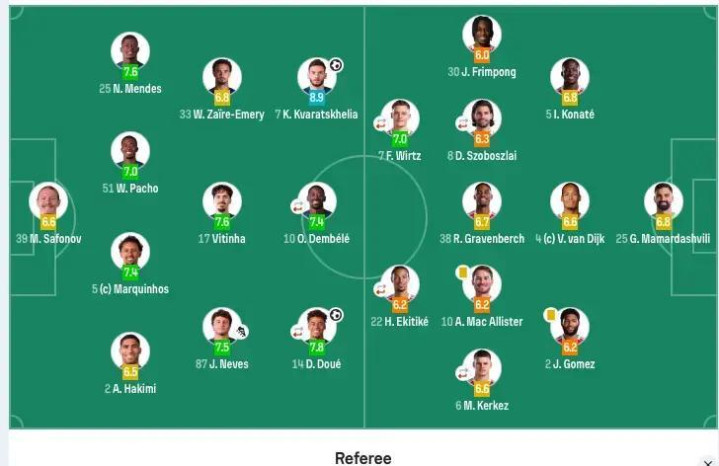 先看关键时间点。第11分钟,登贝莱持续冲击后制造混乱,杜埃回转 摆脱后射球 ,皮球变线入网。这个球表面是运气,底层是巴黎前场连续施压换来的出脚空间。第65分钟,内维斯直塞,克瓦拉茨赫利亚对峙 后完成终结,这是典型的“压迫—抢回—纵向一刀”的欧冠高阶攻击 。第71分钟,裁判 先给十二码球,VAR介入后取消,这个局 又把赛事 推向另一个焦点:判决 尺度。