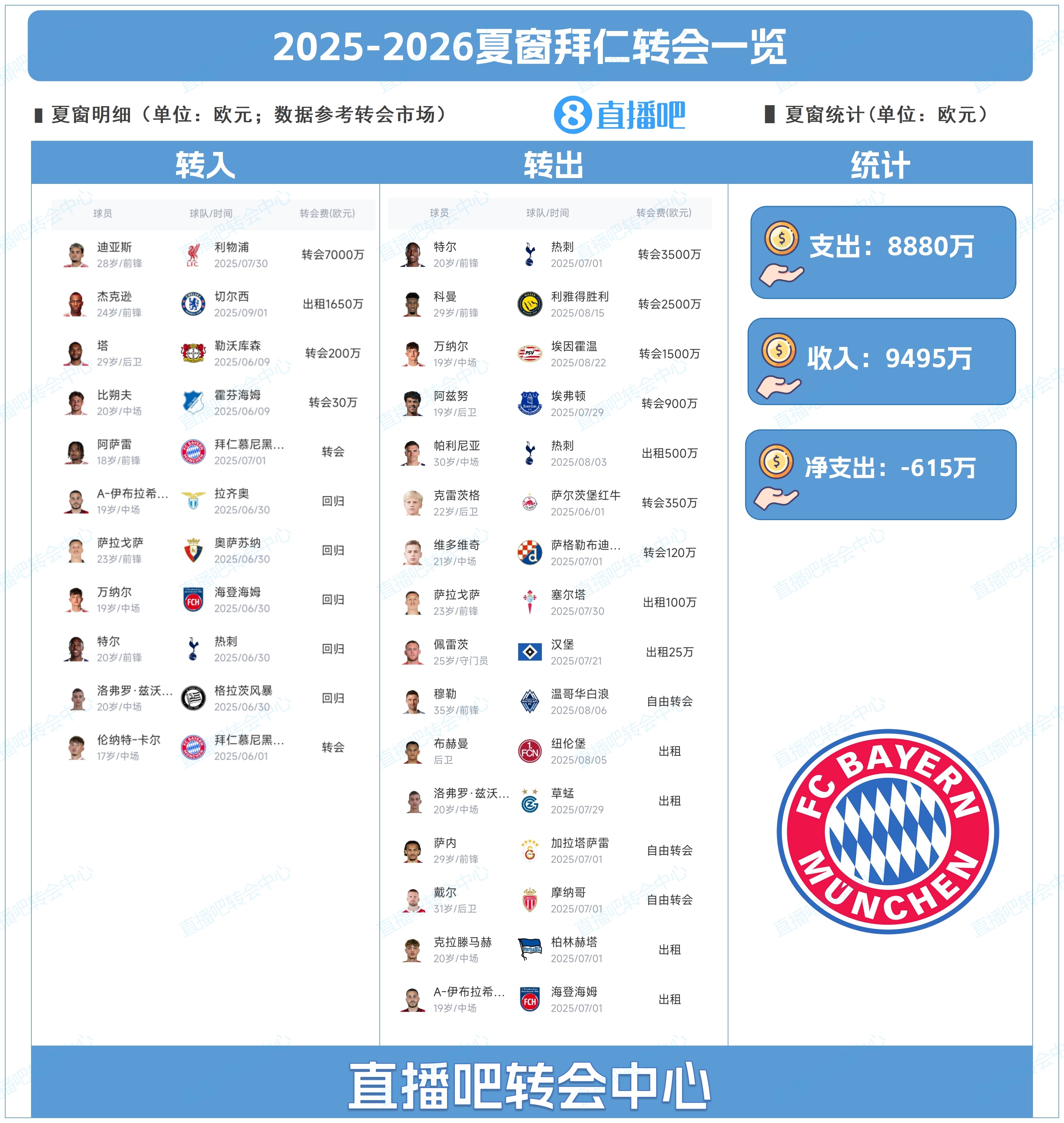 为吧友们转头了拜仁今夏的转会操作,吧友们能打几分?
