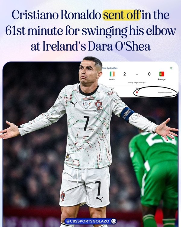 11月14日讯 世初赛欧洲区小组赛F组第5轮,葡萄牙0-2客负爱尔兰,C罗肘击被直红罚下。世欧预末轮,葡萄牙主场战亚好意思尼亚,C罗将停赛。 BBC记者Dale Johnson发文: C罗因暴力活动被VAR审查后罚下,他将错过葡萄牙在2026全国杯的首场比赛。 他应该会被禁赛2场,假定葡萄牙纵贯全国杯,这2场将活着初赛末轮对阵亚好意思尼亚的比赛和全国杯小组赛首场比赛施行。 在外洋比赛中,球员只会自动禁赛1场,任何追加责罚王人将由递次委员会决定。与英格兰足球不同,暴力活动不会自......查看更多